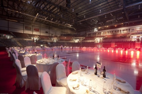 - The only amphitheatre equipped with retractable boards and bleachers, enabling the playing surface to be resized according to North American or Olympic standards.